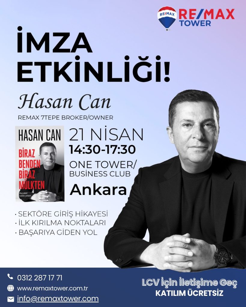 RE/MAX Tower olarak, sektörün dünyadaki isimlerinden Hasan Can’ı ağırlamaktan mutluluklar ortaya çıkıyor. Açılışta yer alanlarımız Hasan Can; sektöre giriş hikayesi, kariyerindeki kırılma noktalarını ve başarı giden yolda edindiği değerli deneyimler yaşanabileceklerle paylaşacak.